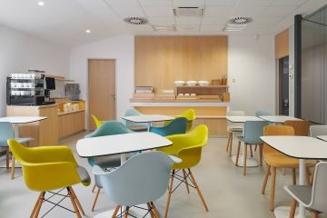 Sál je koncipován jako příjemná restaurace, která však také může služit jako k pořádání workshopů, prezentací, oslav banketů.
